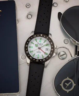 A GMT watch with a versatile 38.5mm case, that suits most wrists, crafted from stainless steel featuring a white dial with a unique lacquer finish and a true GMT complication for tracking a second time zone.