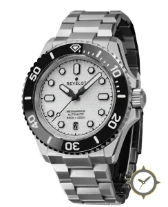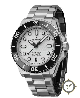 A Dive watch with a versatile 39.5mm case, that suits most wrists, crafted from stainless steel featuring a white dial with a unique textured triangular waffle (tessellated) finish.