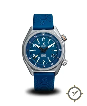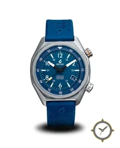 A Dive watch with a bold 45mm presence on the wrist, crafted from stainless steel featuring a blue dial with a unique matte finish.