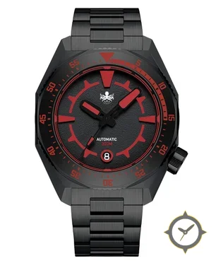 A Dive watch with a versatile 41mm case, that suits most wrists, crafted from stainless steel featuring a black dial with a unique textured/grain matte finish finish.
