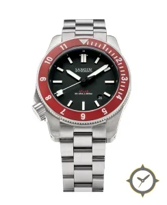 A Sports watch with a vintage-inspired 32mm case, crafted from stainless steel featuring a black dial with a unique matte finish.