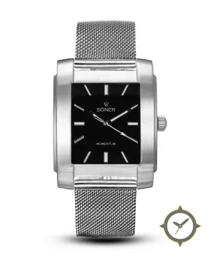 A Dress watch with a vintage-inspired 31.5mm case, crafted from stainless steel featuring a black dial with a unique glossy finish.