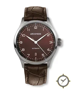 A Pilot watch with a vintage-inspired 37.5mm case, crafted from stainless steel featuring a brown dial with a unique sunburst finish.