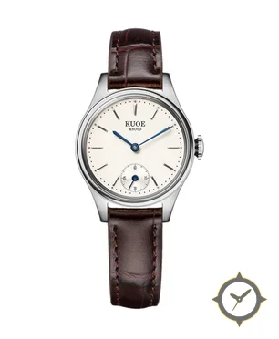 A Dress watch with a vintage-inspired 25mm case, crafted from stainless steel featuring a white dial with a unique matte finish.