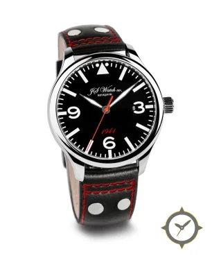 A Pilot watch with a bold 49mm presence on the wrist, crafted from stainless steel featuring a black dial with a unique glossy finish.