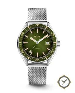 A Dive watch with a bold 42.5mm presence on the wrist, crafted from stainless steel featuring a green dial with a unique sunburst finish.