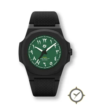 A Tactical watch with a bold 42mm presence on the wrist, crafted from resin featuring a green dial with a unique matte finish.