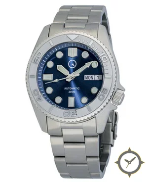 A Dive watch with a bold 42.5mm presence on the wrist, crafted from stainless steel featuring a blue dial with a unique sunburst finish.