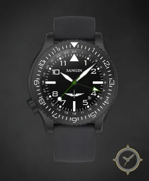 A Pilot watch with a bold 42.5mm presence on the wrist, crafted from stainless steel featuring a black dial with a unique matte finish.