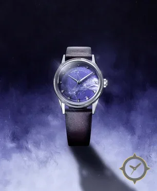 A Dress watch with a versatile 39.5mm case, that suits most wrists, crafted from stainless steel featuring a purple dial with a unique marbled finish.