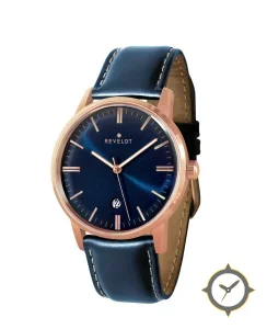 A Dress watch with a vintage-inspired 33mm case, crafted from gold featuring a blue dial with a unique sunburst finish.