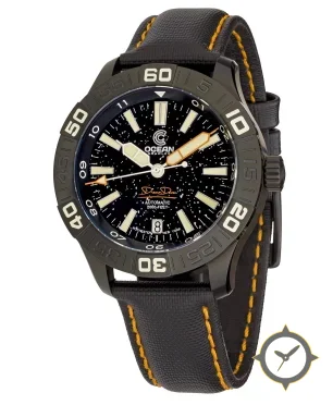 A Dive watch with a bold 44mm presence on the wrist, crafted from stainless steel featuring a black dial with a unique starry/speckled texture finish.