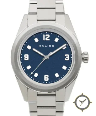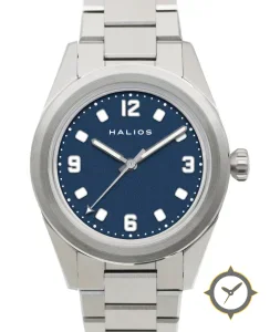 A Field watch with a vintage-inspired 33mm case, crafted from stainless steel featuring a blue dial with a unique matte/grained finish.