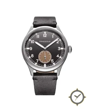 A Field watch with a vintage-inspired 37.5mm case, crafted from stainless steel featuring a black dial with a unique matte finish.