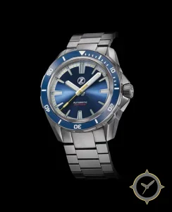 A Dive watch with a bold 49mm presence on the wrist, crafted from stainless steel featuring a blue dial with a unique sunburst finish.