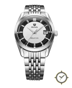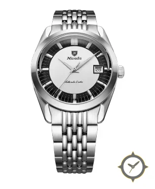 A Vintage watch with a versatile 38mm case, that suits most wrists, crafted from stainless steel featuring a silver dial with a unique vertical brushed finish.
