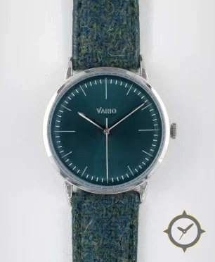 A Minimalist watch with a bold 42mm presence on the wrist, crafted from stainless steel featuring a green dial with a unique sunburst finish.