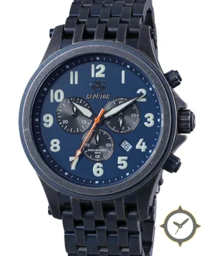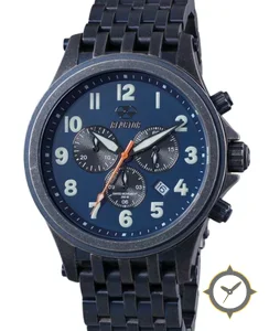 A Chronograph watch with a bold 47mm presence on the wrist, crafted from stainless steel featuring a blue dial with a unique matte finish.