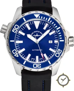 A Dive watch, crafted from stainless steel featuring a blue dial with a unique sunburst finish.