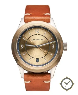 A Field watch with a versatile 39.5mm case, that suits most wrists, crafted from bronze featuring a gold dial with a unique brushed sunburst finish.