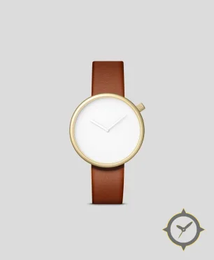 A Minimalist watch with a vintage-inspired 35mm case, crafted from gold featuring a white dial with a unique smooth matte finish.
