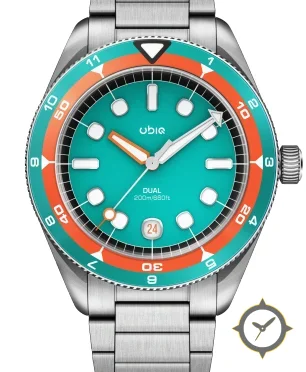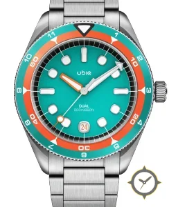 A Dive watch with a bold 43.5mm presence on the wrist, crafted from stainless steel featuring a turquoise dial with a unique matte finish.