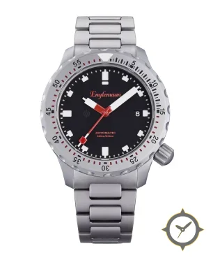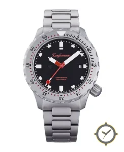 A Dive watch with a bold 45mm presence on the wrist, crafted from stainless steel featuring a black dial with a unique matte finish.