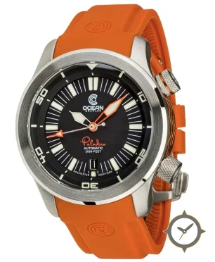 A Dive watch with a bold 42.5mm presence on the wrist, crafted from stainless steel featuring a black dial with a unique matte finish.