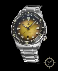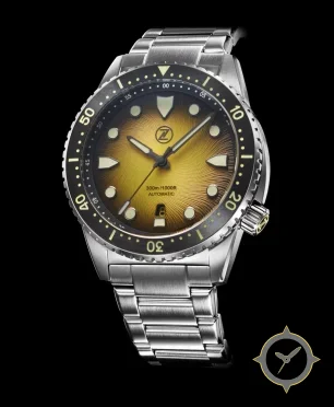 A Dive watch with a versatile 39.5mm case, that suits most wrists, crafted from stainless steel featuring a gold dial with a unique sunburst / fumé gradient finish.