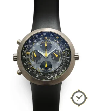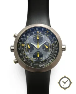 A Chronograph watch with a bold 50mm presence on the wrist, crafted from titanium featuring a blue dial with a unique matte finish.
