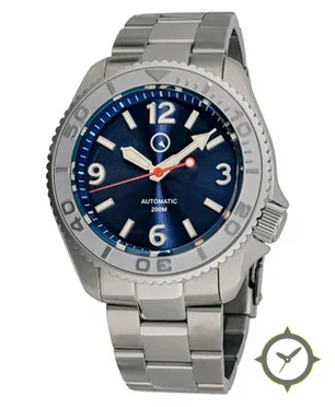 A Dive watch with a bold 49.5mm presence on the wrist, crafted from stainless steel featuring a blue dial with a unique sunburst finish.