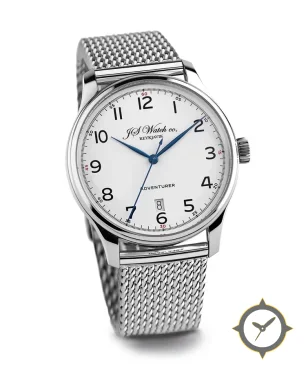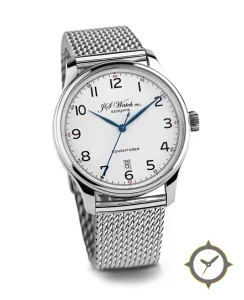 A Dress watch with a bold 43mm presence on the wrist, crafted from stainless steel featuring a white dial with a unique smooth finish.