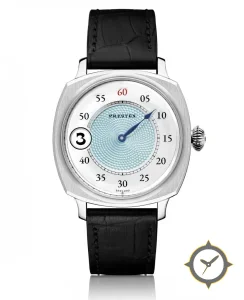 A Dress watch with a bold 45mm presence on the wrist, crafted from stainless steel featuring a white dial with a unique guilloché central disk with smooth outer chapter ring finish.