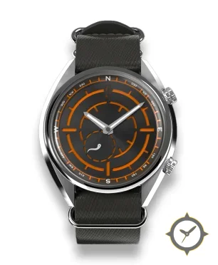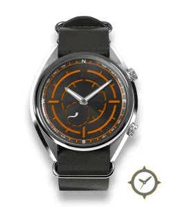 A Field watch, crafted from stainless steel featuring a black dial with a unique brushed sunburst center with matte cut-out outer rings finish.