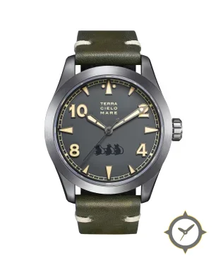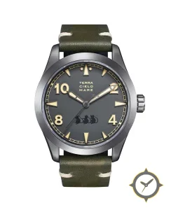 A Field watch with a vintage-inspired 37.5mm case, crafted from stainless steel featuring a gray dial with a unique matte finish.