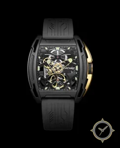 A Skeleton watch, crafted from stainless steel featuring a black dial with a unique open-worked / skeleton finish.