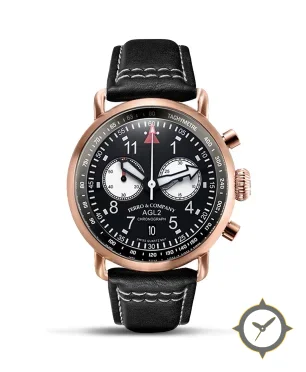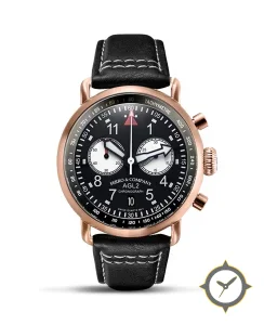 A Pilot watch with a vintage-inspired 36.5mm case, crafted from gold featuring a black dial with a unique matte finish.