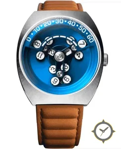 A Skeleton watch with a bold 42mm presence on the wrist, crafted from stainless steel featuring a blue dial with a unique concentric sunburst finish.