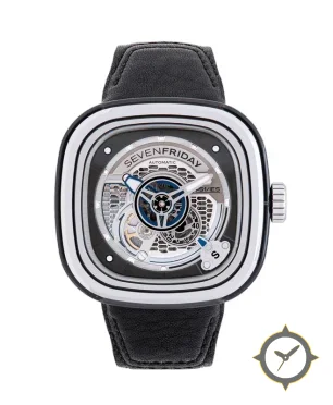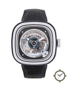 A Skeleton watch with a bold 44.5mm presence on the wrist, crafted from stainless steel featuring a silver dial with a unique skeletonised / open-worked finish.