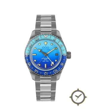 A GMT watch with a versatile 38.5mm case, that suits most wrists, crafted from stainless steel featuring a blue dial with a unique sunburst gradient finish and a true GMT complication for tracking a second time zone.