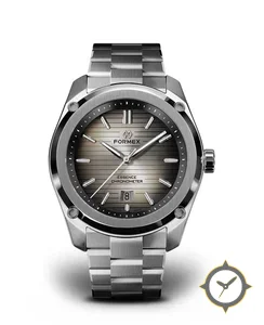 A Sports watch with a bold 45.5mm presence on the wrist, crafted from stainless steel featuring a brown dial with a unique brushed horizontal lines with sunburst/gradient (fumé) finish.