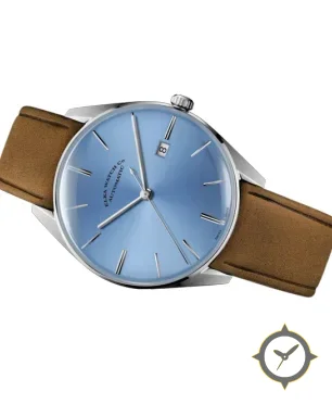 A Dress watch with a versatile 41mm case, that suits most wrists, crafted from stainless steel featuring a blue dial with a unique sunburst finish.