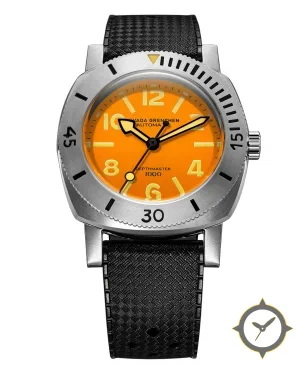 A Dive watch with a vintage-inspired 36mm case, crafted from stainless steel featuring a orange dial with a unique gradient lacquer finish.