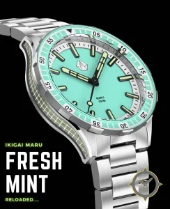 A Dive watch, crafted from stainless steel featuring a turquoise dial with a unique matte lacquer finish.