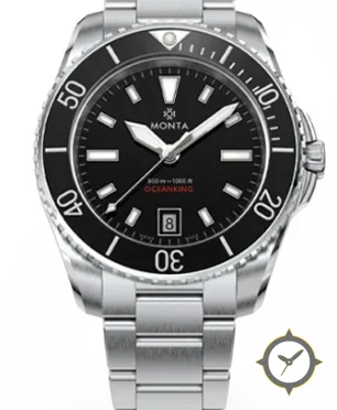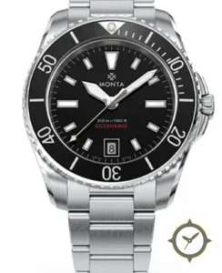 A Dive watch with a bold 47mm presence on the wrist, crafted from stainless steel featuring a black dial with a unique glossy finish.