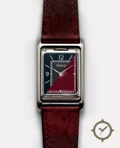 A Dress watch with a vintage-inspired 25.5mm case, crafted from stainless steel featuring a red dial with a unique matte finish.