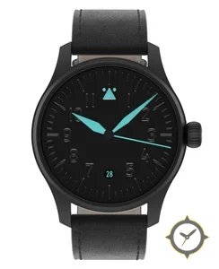 A Pilot watch with a bold 44mm presence on the wrist, crafted from stainless steel featuring a black dial with a unique matte finish.