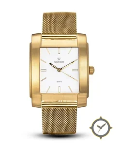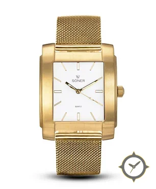 A Dress watch with a vintage-inspired 33mm case, crafted from gold featuring a white dial with a unique smooth matte finish.