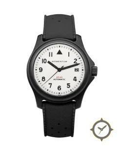 A Field watch with a vintage-inspired 36mm case, crafted from stainless steel featuring a white dial with a unique matte finish.
