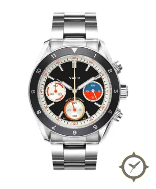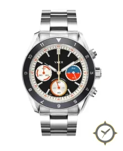 A Chronograph watch with a bold 47mm presence on the wrist, crafted from stainless steel featuring a black dial with a unique matte finish.
